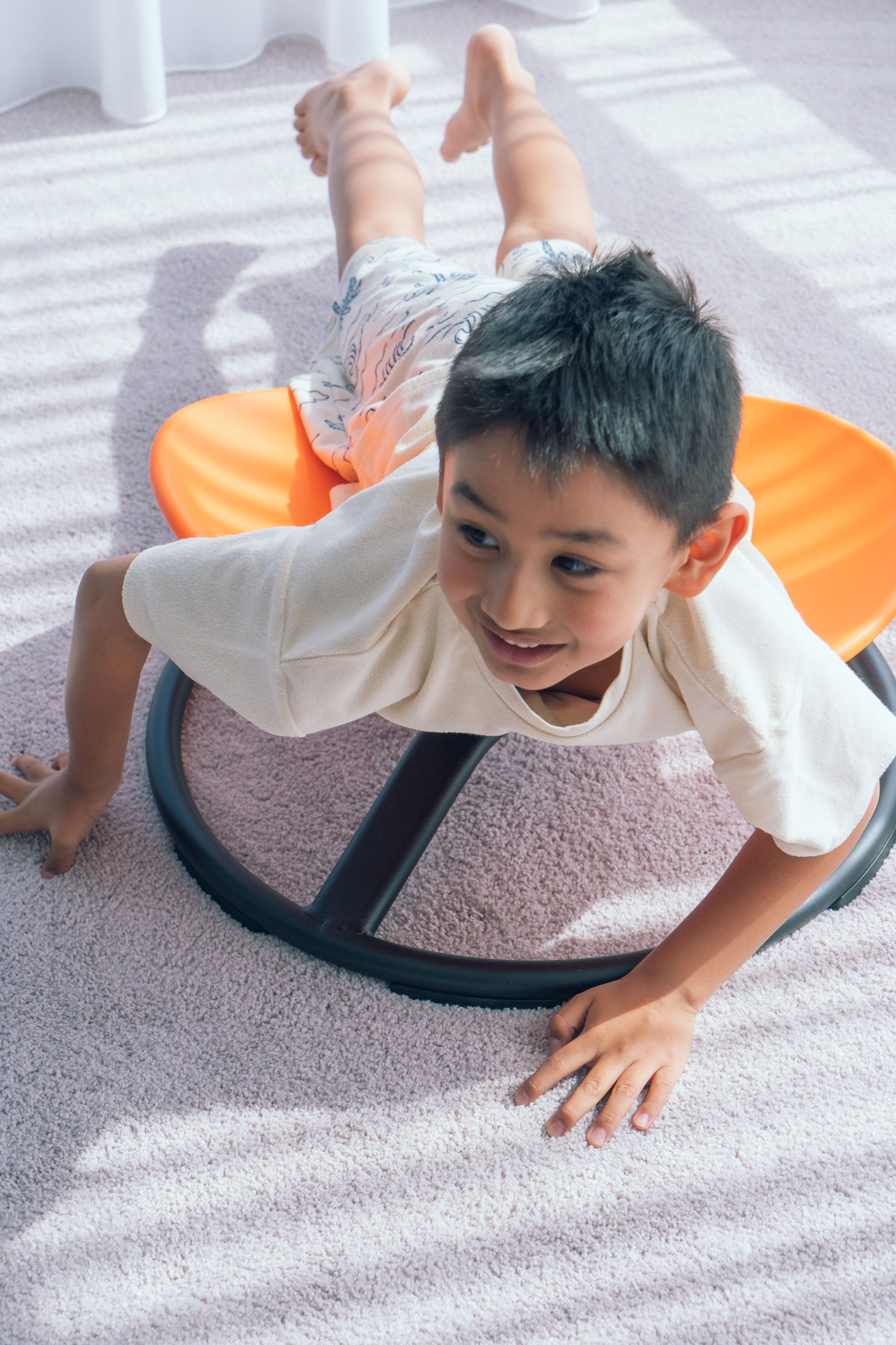 The MEEKA Happy Chair stimulates both sides of the brain, helping to build equilibrium while also supporting focus and sensory regulation. Its gentle tilt enhances vestibular input, encouraging balance, core strength, and body awareness — all while seated. Best of all, the movement is completely child-led: spin fast for excitement, slow down for calm — every child can find their own rhythm.